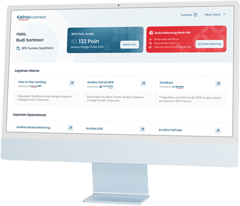 Kairos Connect menghubungkan berbagai layanan dalam satu portal untuk mendukung digitalisasi operasional BPR dan mempercepat pertumbuhan bisnis.